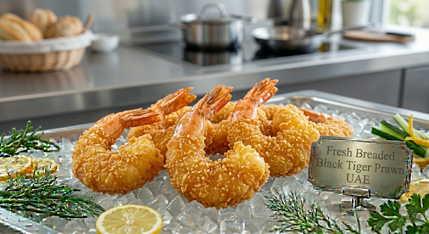 Breaded Black Tiger Prawn UAE (روبيان تايجر مقلي) refers to premium Penaeus monodon, family Penaeidae, coated in seasoned breadcrumbs for a crisp exterior and tender interior. Sourced from Indo-Pacific coastal waters (FAO Area 57), these prawns are farmed under controlled conditions. Mild sweet flavor, firm texture, and no bones make them ideal for UAE favorites like Sayadieh platters or modern seafood snacks.