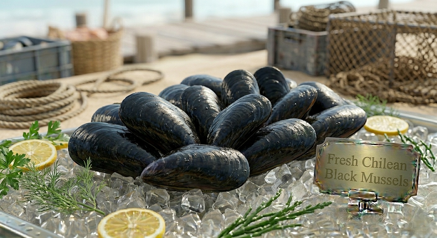 Chilean black mussels UAE, scientifically Mytilus chilensis, belong to the Mytilidae family. Known locally as محار أسود تشيلي, they thrive in cold coastal waters and fjords of Chile (FAO Area 87). Recognized for glossy black shells and succulent orange flesh, their flavor is sweet with a hint of brininess, perfect for steaming, grilling, or preparing UAE specialties like Machboos and Sayadieh. Appearance markers include shiny shells, intact adductor muscles, and firm texture, ensuring premium freshness. Ideal for Friday family meals or special gatherings.