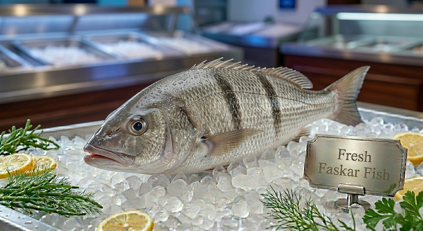 A fresh Faskar should have clear, non-cloudy eyes and bright red gills. The skin should be shiny with the two black bars clearly visible, and the flesh should spring back when pressed. We guarantee these freshness markers on every delivery.