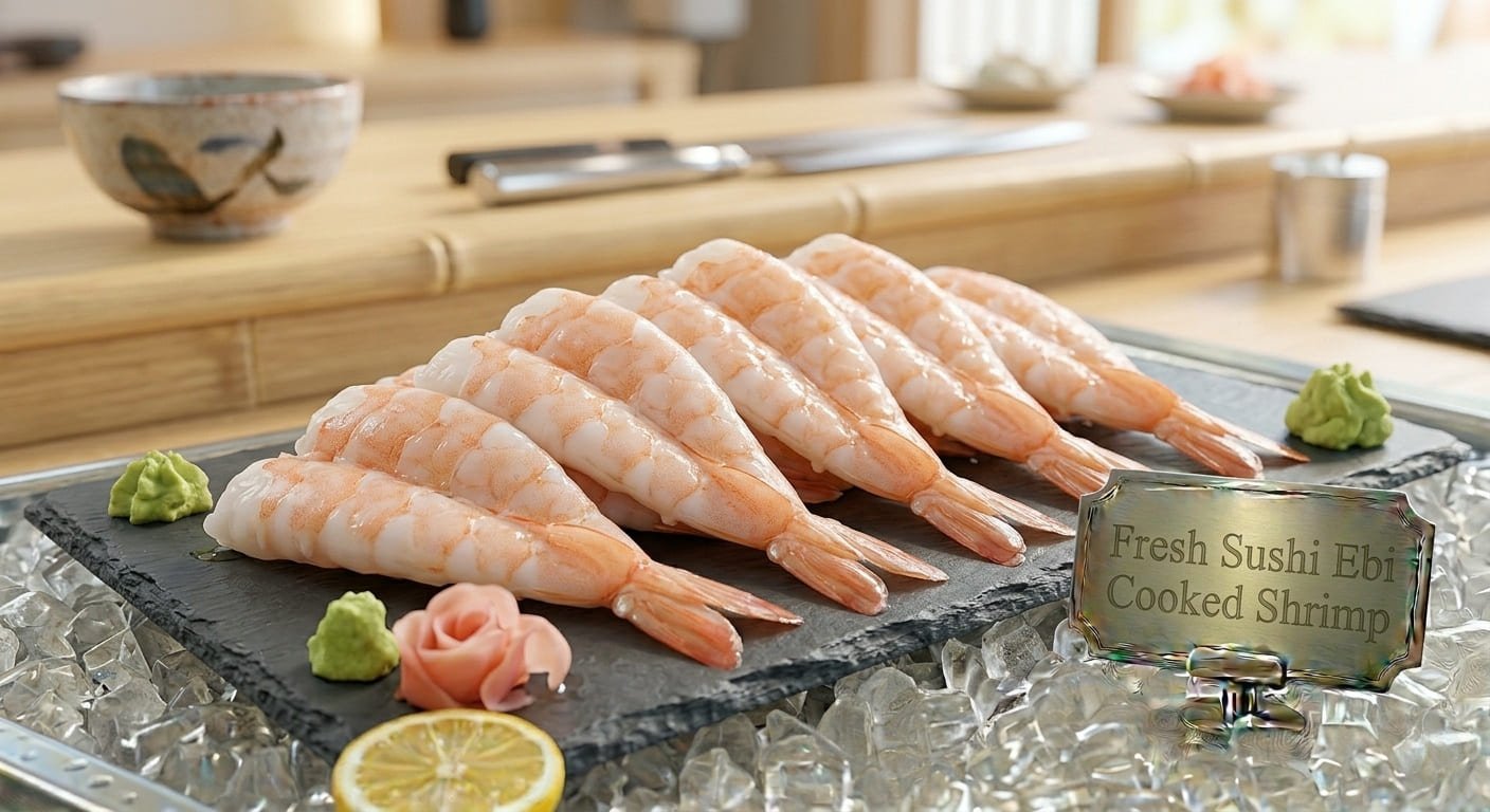 Pre-cooked shrimp for sushi, mild-sweet flavor, ready for rolls or appetizers. Halal and quality-inspected.